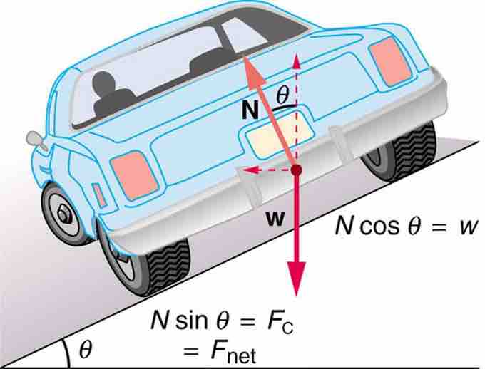 As an example of a uniform circular motion and its application, let us now consider banked curves, where the slope of the road helps you negotiate the curve. The greater the angle