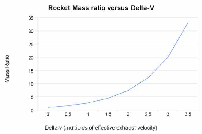 See for an illustration plotting the relationship between final velocity and rocket mass ratios (according to the rocket equation).
