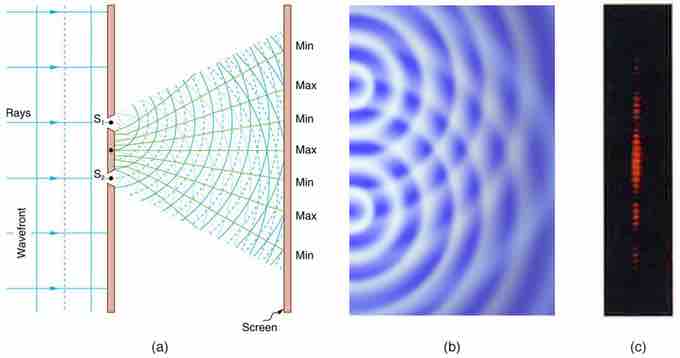 The double-slit experiment, also called Young's experiment, shows that matter and energy can display both wave and particle characteristics. As we discussed in the atom about the Huygens principle, Christiaan Huygens proved in 1628 that light was a wave. But some people disagreed with him, most notably Isaac Newton. Newton felt that color, interference, and diffraction effects needed a better explanation. People did not accept the theory that light was a wave until 1801, when English physicist Thomas Young performed his double-slit experiment. In his experiment, he sent light through two closely spaced vertical slits and observed the resulting pattern on the wall behind them. The pattern that resulted can be seen in .