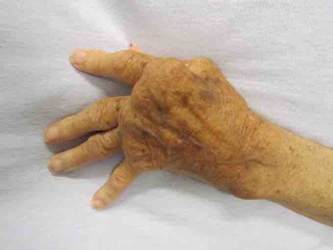 Rheumatoid arthritis (RA) is a chronic, systemic inflammatory disorder that may affect many tissues and organs, but principally attacks flexible (synovial) joints. The process involves an inflammatory response of the capsule around the joints (synovium) secondary to swelling (hyperplasia) of synovial cells, excess synovial fluid, and the development of fibrous tissue (pannus) in the synovium. The pathology of the disease process often leads to the destruction of articular cartilage and ankylosis (fusion) of the joints. Rheumatoid arthritis can also produce diffuse inflammation in the lungs, the membrane around the heart (pericardium), the membranes of the lung (pleura), and the white of the eye (sclera), and also nodular lesions, most common in subcutaneous tissue. Although the cause of rheumatoid arthritis is unknown, autoimmunity plays a pivotal role in both its chronicity and progression, and RA is considered a systemic autoimmune disease.