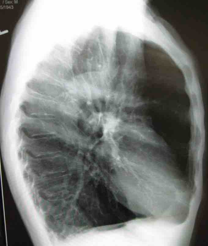 Emphysema is a common lung disease in the elderly. Note the barrel-shaped chest and flat diaphragm.