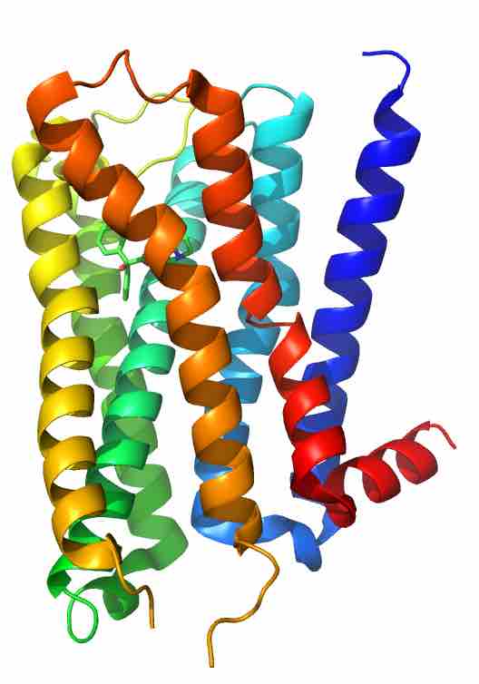 This human M2 muscarinic acetylcholine receptor is bound to an antagonist (ACh).
