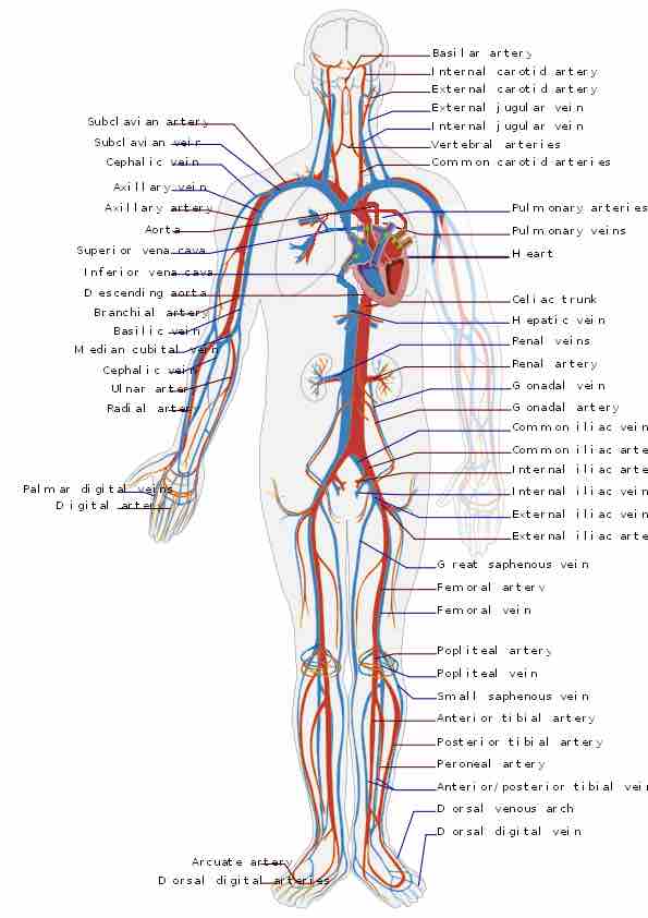 The cardiovascular system is composed largely of the circulatory system, or the system of blood vessels that distributes oxygen from the lungs throughout the body.