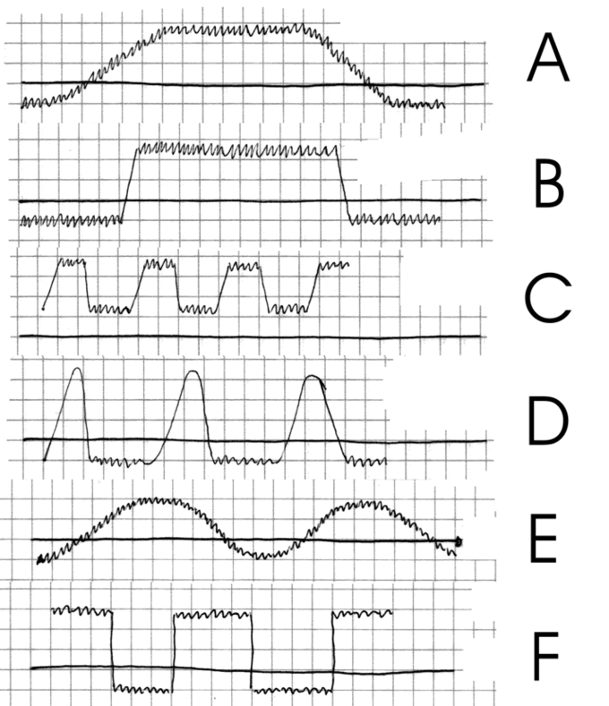 Performance of the various types of fever: a) Fever continues b) Fever continues to abrupt onset and remission c) Fever remittent d) Intermittent fever e) Undulant fever f) Relapsing fever