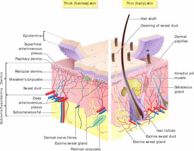 This is an image of the layers beneath thin (hairy) and thick (hairy) skin.