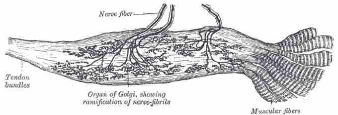 The Golgi organ (also called Golgi tendon organ, tendon organ, neurotendinous organ or neurotendinous spindle) is a proprioceptive sensory receptor organ that is located at the insertion of skeletal muscle fibers onto the tendons of skeletal muscle. It provides the sensory component of the Golgi tendon reflex.