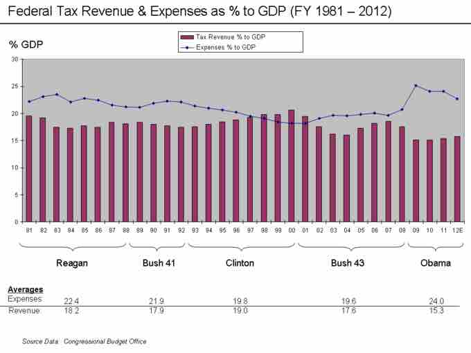 The annual budget deficit is the difference between actual cash collections and budgeted spending (a partial measure of total spending) during a given fiscal year, which runs from October 1 to September 30. Since 1970, the U.S. federal government has run deficits for all but four years (1998–2001) contributing to a total debt of $16.1 trillion as of September 2012 .