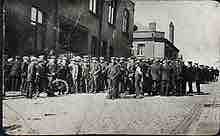 Labor strikes, such as this one in Tyldesley in the 1926 General Strike in the U.K., represent the often fraught relationship between labor and business.