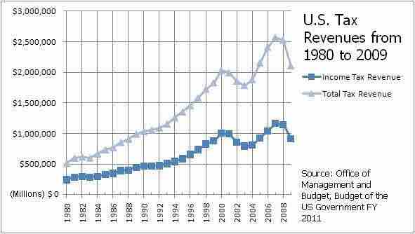 This graph shows the revenue the U.S. government has made purely from income tax, in relation to all taxes.