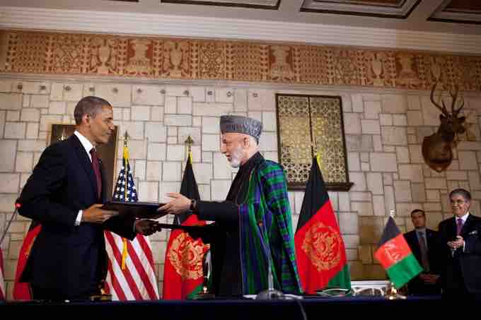 Obama and Afghanistan President Hamid Karzai sign a strategic partnership agreement. One of the main objectives of diplomacy and diplomatic negotiations is signing and negotiating treaties with other countries. If negotiation by national diplomats is successful, the national leaders (as depicted here) sign the treaties.