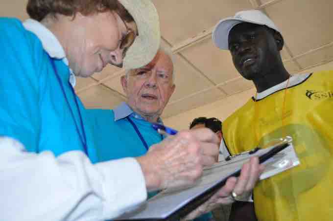 Former U.S. President Jimmy Carter visits a referendum polling center in Sudan 2011. Former President Carter is leading the Carter Center's international observation of the referendum. Even after leaving office, political leaders can remain active in informal diplomacy.