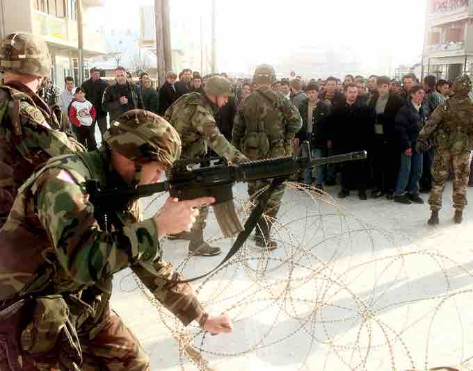 In this humanitarian intervention, NATO forces intervened in Kosovo. Humanitarian interventions are frequently controversial, and the motives of the intervening force are often called into question.