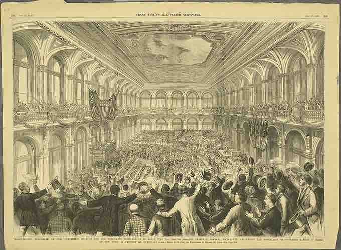 The 1876 Democratic National Convention at the Merchants Exchange Building in St. Louis, Missouri.