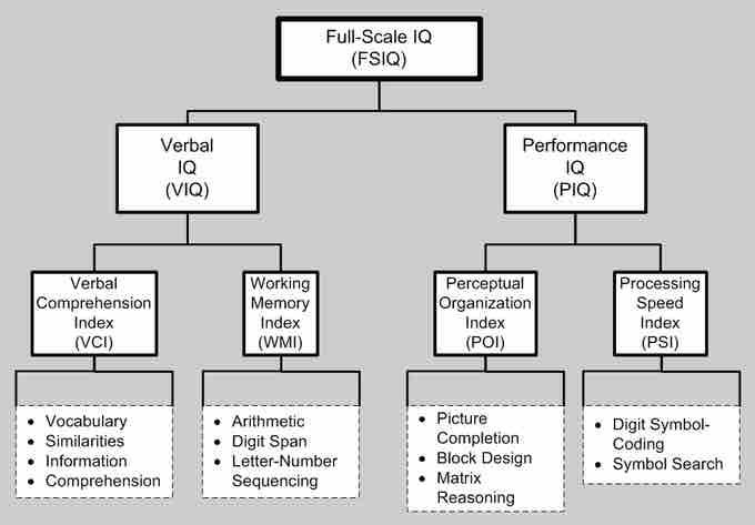 The WAIS uses a variety of components to determine a person's IQ score, including verbal, memory, perceptual, and processing skills.
