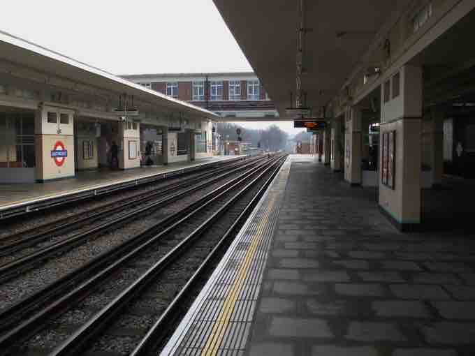 The train tracks look as though they come to a single point in the distance, illustrating the concept of convergence.