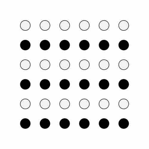 Because of the law of similarity, people tend to see this as six clusters of black and white dots rather than 36 individual dots.