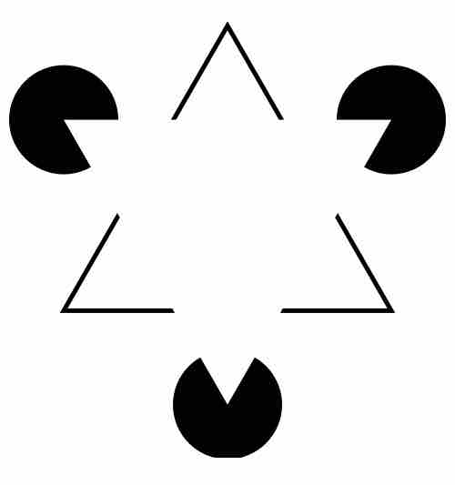 In the Kanizsa triangle illusion, the figure-ground law causes most people to perceive a white triangle in the foreground, which makes the black shapes recede into the background.