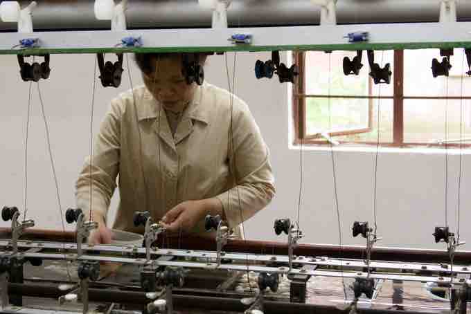 A highly specialized division of labor is often used in factories, such as this Chinese silk factory.