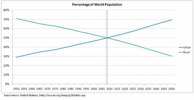One projection suggests that, by 2030, the proportion of people living in cities may reach 60%.