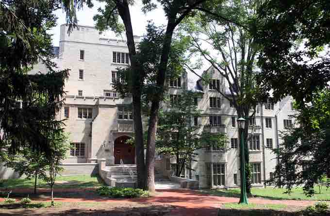 The photo shows Morrison Hall at Indiana University, home of the Kinsey Institute.