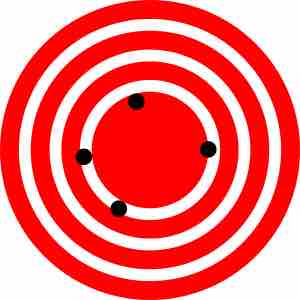 This target shows an example of low accuracy (points are not close to center target) but high precision (points are close together). In this case, there is more systematic error than random error.