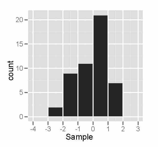 This is a sample of size 50 from a normal distribution, plotted out as a histogram. The histogram looks somewhat bell-shaped, indicating normality.