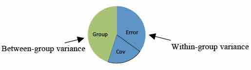 This pie chart shows the partitioning of variance within ANCOVA analysis.