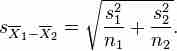Here s2 is the unbiased estimator of the variance of the two samples, ni = number of participants in group i, i=1 or 2. Note that in this case