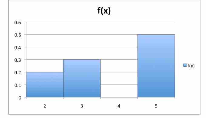 Sometimes, the discrete probability distribution is referred to as the probability mass function (pmf). The probability mass function has the same purpose as the probability histogram, and displays specific probabilities for each discrete random variable. The only difference is how it looks graphically.