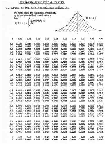 These tables can be a bit intimidating, but you simply need to know how to read them. The leftmost column tells you how many sigmas above the the mean to one decimal place (the tenths place).The top row gives the second decimal place (the hundredths).The intersection of a row and column gives the probability.