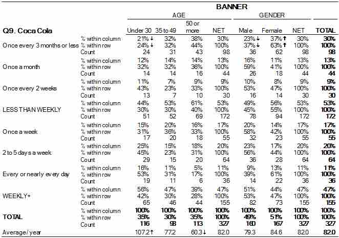 Crosstab of Cola Preference by Age and Gender
