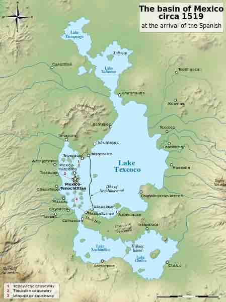 The basin of Mexico circa 1519 at the arrival of the Spanish