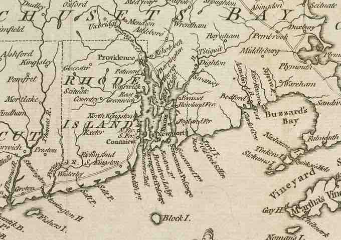 A map of the colony of Rhode Island, with the adjacent parts of Connecticut and Massachusetts Bay.