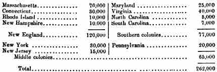Estimated population in the Colonies as of the year 1700. The Middle Colonies held a population of about 65,000, compared to New England's 120,000 and the Southern Colonies' 77,000.