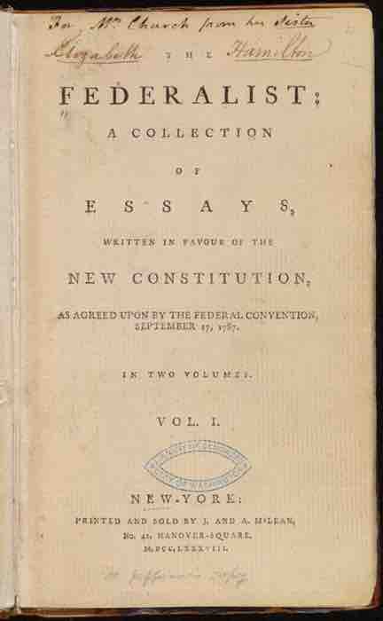 Title page of the first printing of what would be The Federalist Papers (1788).