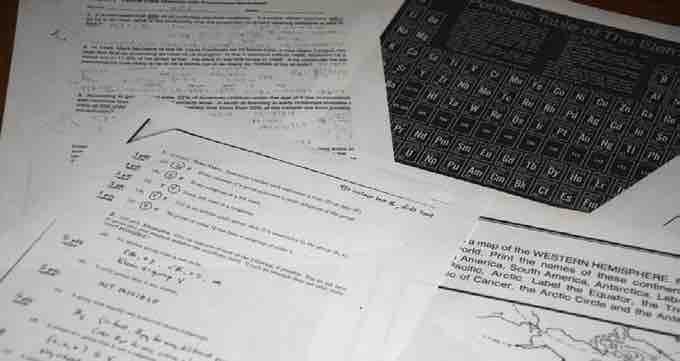Worksheets from various areas of study cover the desk of a Joint Task Force Trooper. The Servicemen's Readjustment Act, commonly referred to as the G.I. Bill, helped service members pay for higher education and training programs since it was signed into law by President Roosevelt on June 22, 1944.