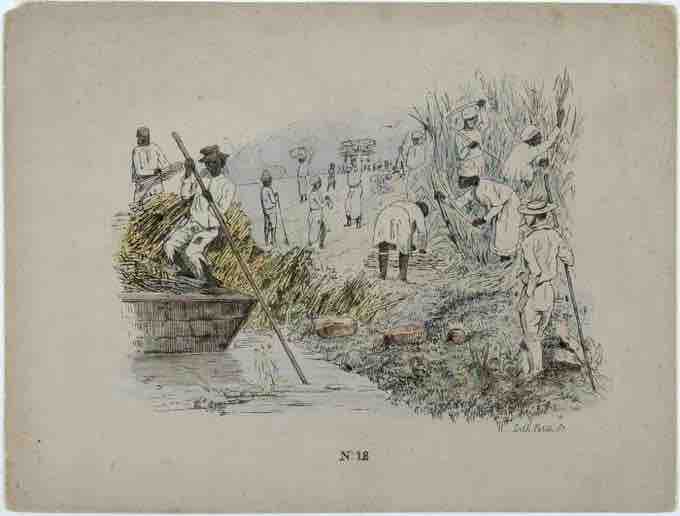 This 19th century lithograph depicts colonial sugarcane plantations in the Caribbean.