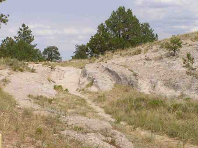 So many wagons traveled the Oregon Trail that ruts are still visible along some sections. This photograph was taken in 2008 in Wyoming.