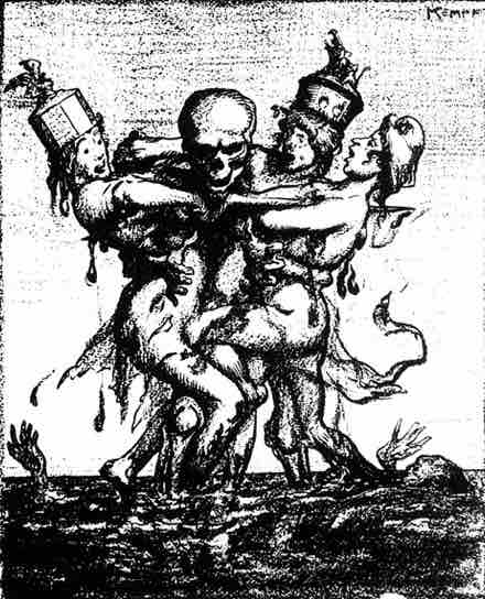 This antiwar cartoon published in June 1917 depicts three women (England, France, and Germany) being embraced by War in a sea of blood and corpses. Antiwar sentiment was still strong in the U.S., despite growing calls for an end to neutrality.