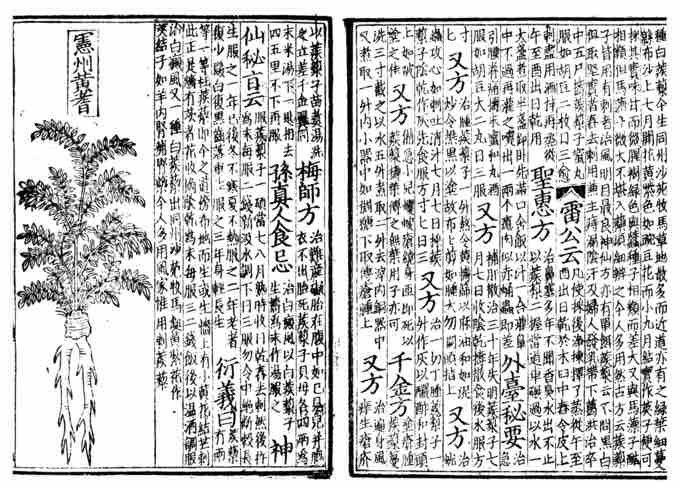 The Bencao on traditional Chinese medicine; printed with woodblock in 1249, Song dynasty.