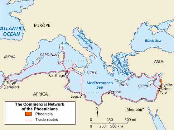 Phoenicia was an ancient Semitic civilization situated on the western, coastal part of the Fertile Crescent near modern-day Lebanon, Israel, Jordan, Palestine, and Syria. All major Phoenician cities were on the coastline of the Mediterranean. It was an enterprising maritime trading culture that spread across the Mediterranean from 1550 BCE to 300 BCE. The Phoenicians used the galley, a man-powered sailing vessel, and are credited with the invention of the bireme oared ship. They were famed in Classical Greece and Rome as "traders in purple," which refers to their monopoly on the precious purple dye of the Murex snail, used for royal clothing, among other things.