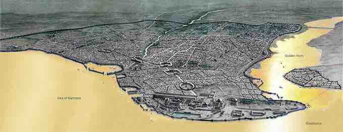 An artist restructured photo of what the city of Constantinople looked like during the Byzantine era.