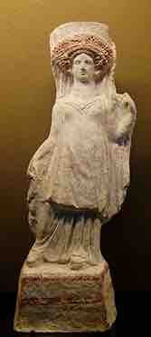 Standing woman holding her veil. Terracotta figurine, c. 400–375 BC