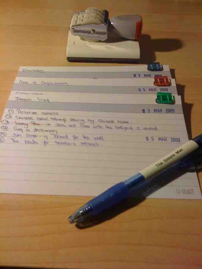 - Index cards: You may want to create an index card or set of cards for each source you use. You can then store the cards in order and can easily sort through them to find the notes you need.