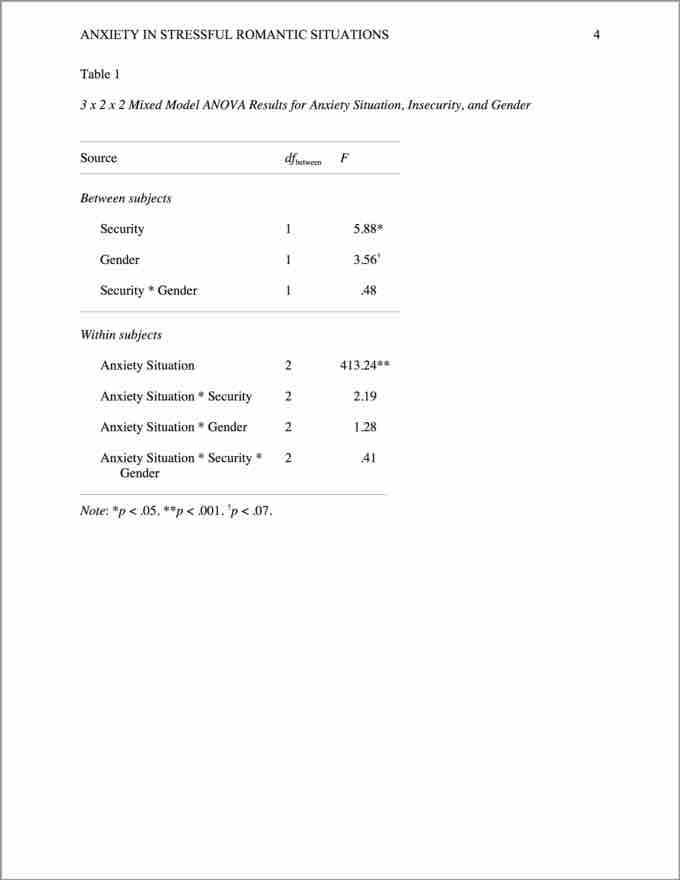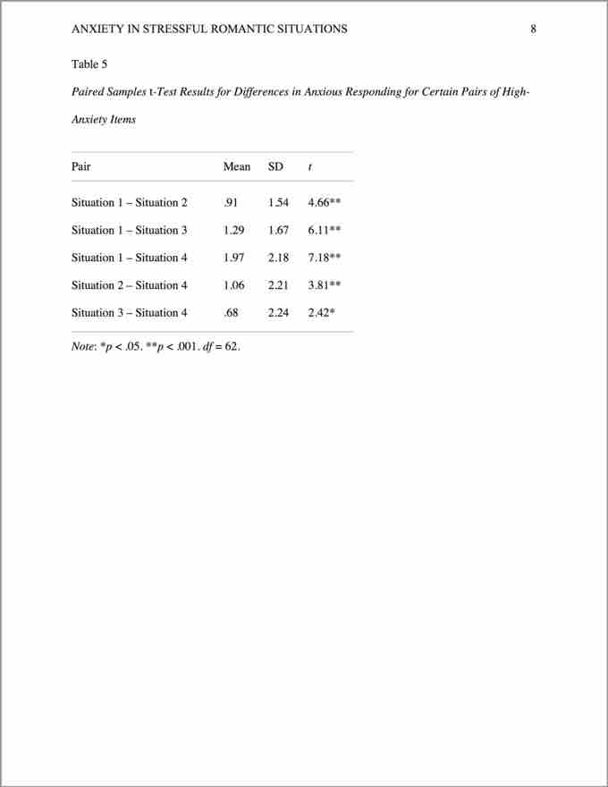 If your table includes any abbreviations that need defining, or statistics whose significance levels need noting, immediately below the table, write the word "Note" in italics, followed by a colon, and then provide the needed explanation.