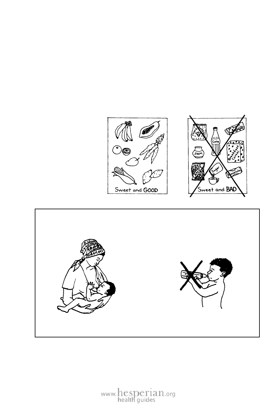 and make cavities—holes in the teeth. Soft food sticks to the teeth easily