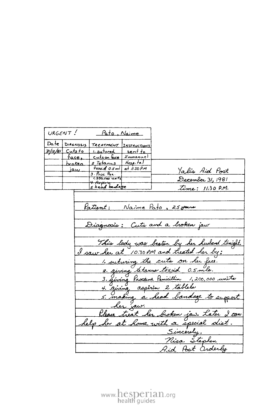 friends carried her, unconscious and bleeding, to the aid post. The front part