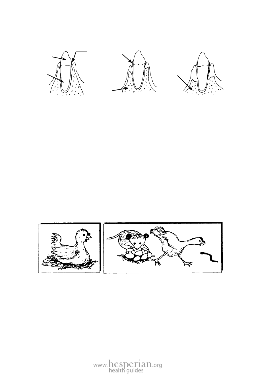 the tooth, the root and bone are open to attack. For example: