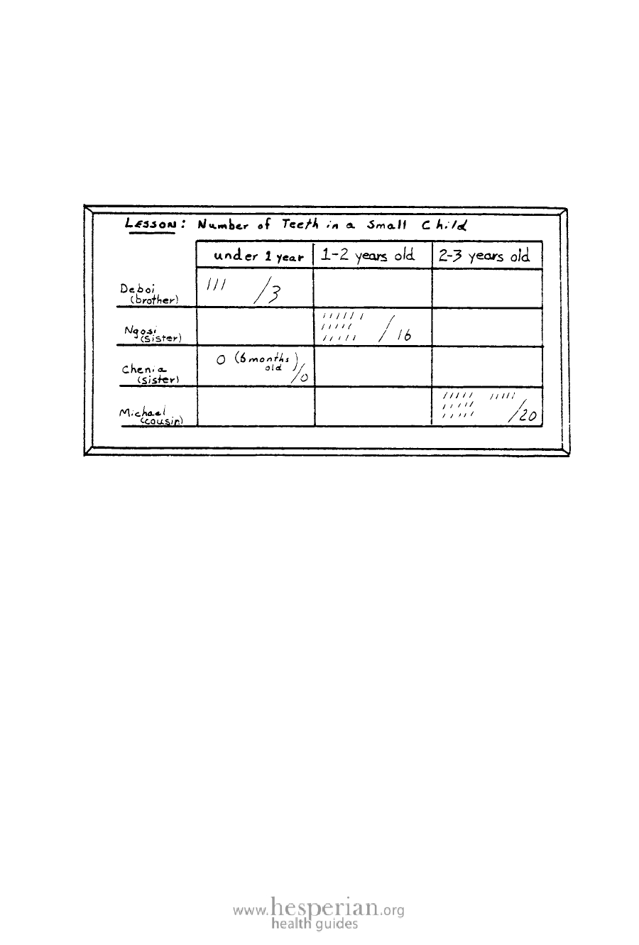 At home, students can count brothers’ and sisters’ teeth to learn how many