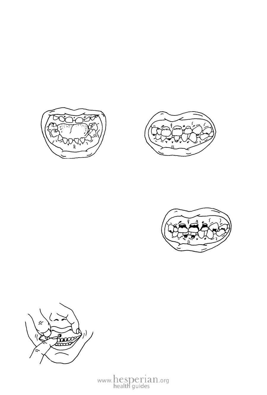 you examine a child at the health clinic, lift his lip and look at his teeth. Do